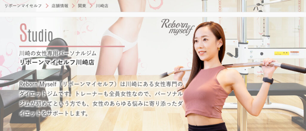 | Reborn myself(リボーンマイセルフ)川崎店 【女性専用】 | 11,000円 | ダイエットプラン 2ヶ月/16回:220,000円 | 体験トレーニング無料 |