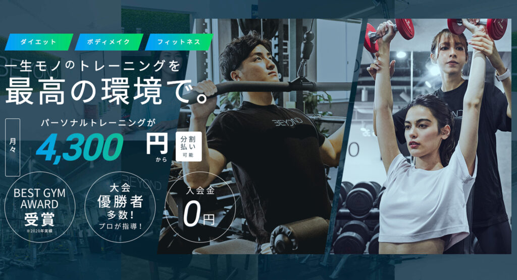 BEYOND(ビヨンド)は、月額4,300円からの手頃な価格で、質の高いパーソナルトレーニングが受けられると注目のジムです。