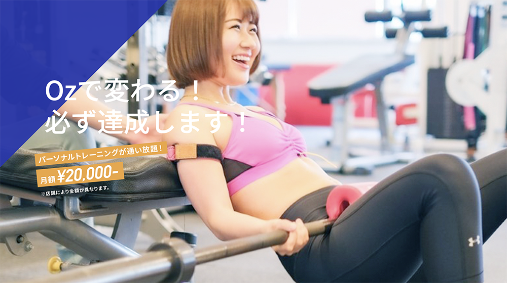 Ozの最大の特徴は、なんと言っても月額20,000円(店舗による)でパーソナルトレーニングが通い放題である点です。