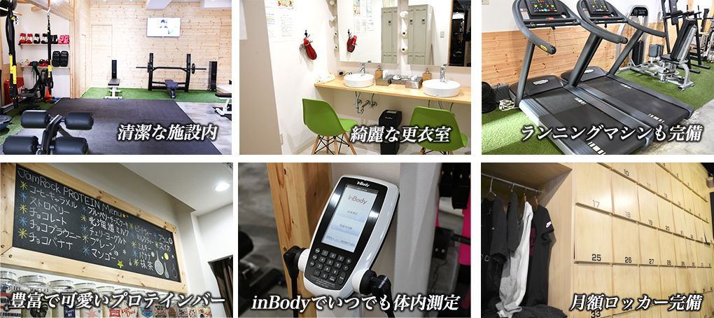 | サービス | レンタルウェア(無料) パーソナル食事管理(コースにより) アフタープロテインサービス(コースにより) シャワールーム・アメニティ完備 サプリメントの販売 |