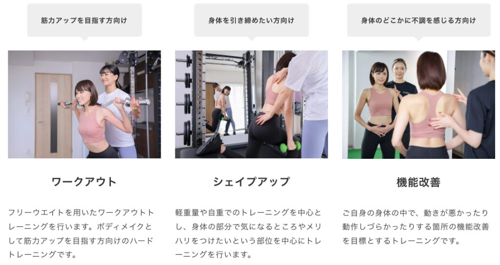 さらに、鶴見店、高津店、二子玉川店では、マシンピラティスのトレーニングも提供されています。これにより、美しい姿勢の維持や腰痛の改善を目指す方にも、効果的なトレーニングを受けることができます。