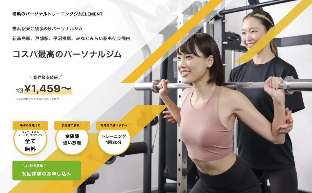 ELEMENT(エレメント)は、30分という短い時間で、楽しくトレーニングを取り入れることができるパーソナルジムとして知られています。
