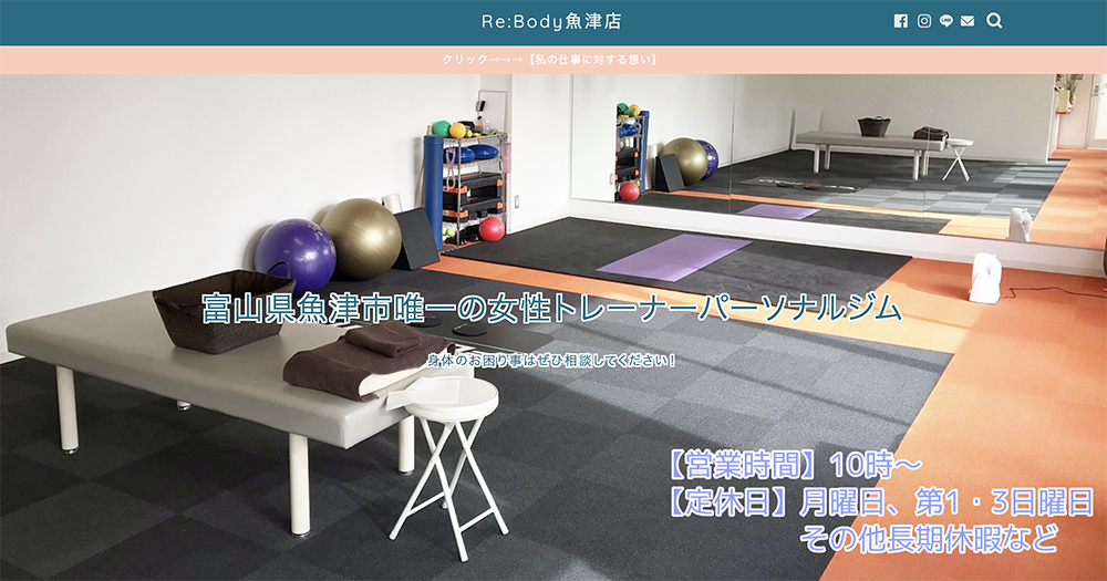 リボディは、魚津市で唯一の女性トレーナーパーソナルジムです。