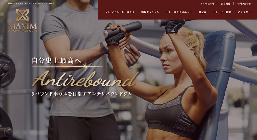 パーソナルジム マクシムは、徳島市に位置しリバウンド率0%を目指すアンチリバウンドに特化したジムです。
