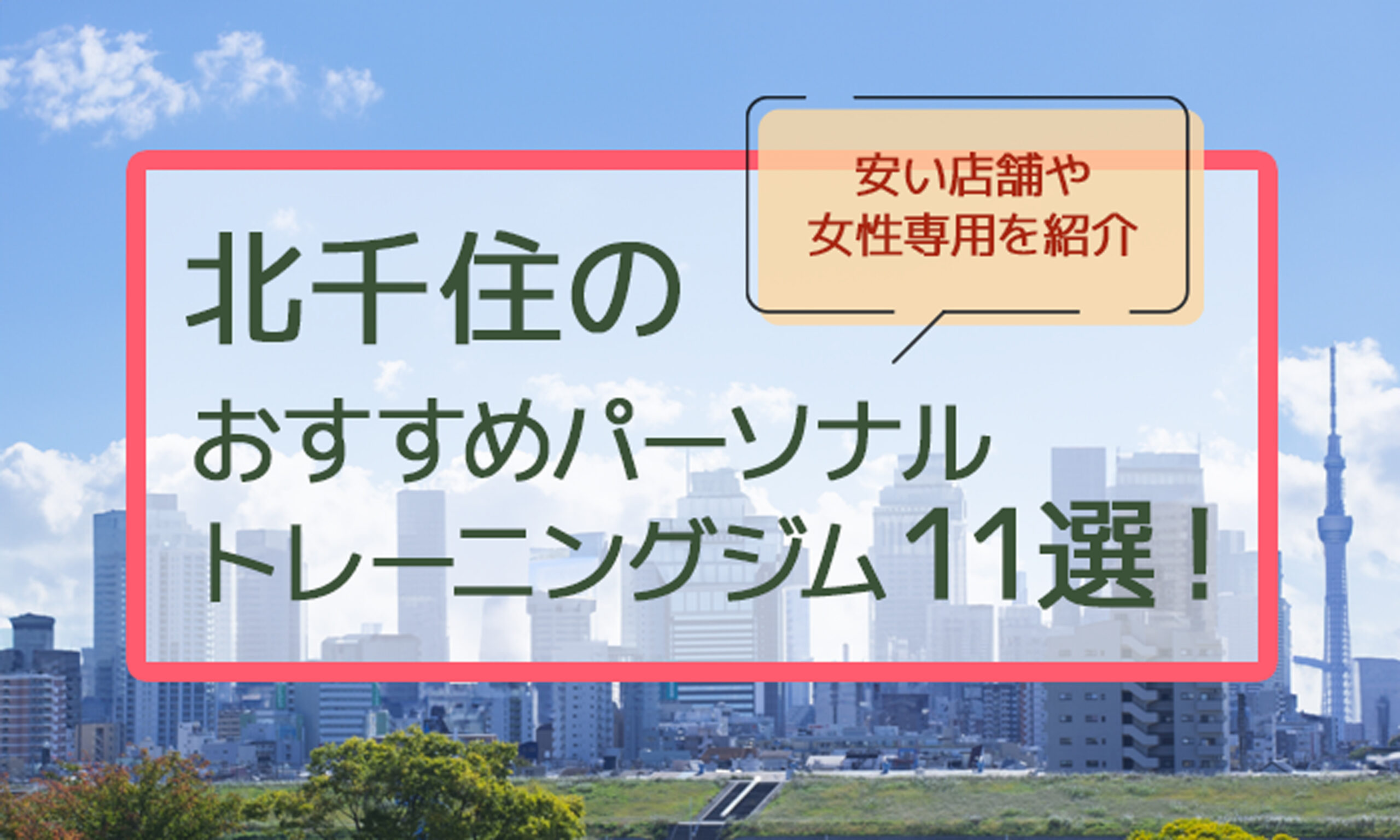 パーソナルトレーニングジム 【北千住ー安い】パーソナルジムーおすすめ11選! 「北千住のリーズナブルなパーソナルトレーニングジムに通いたい方へ」「北千住にはたくさんのトレーニングジムがあり、どれを選べばいいか迷ってしまう」 ジムを探している方の中には、上記のようなお悩みを抱えている方もいるのではないかと思います。 そこで、この記事では、北千住にお住まいの方や通勤でお越しの方々向けに、おすすめのパ... 2023年9月28日